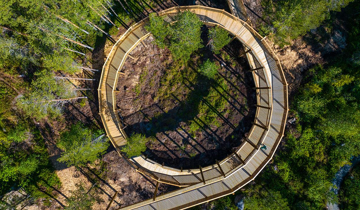 The treetop trail is designed by Denmark's leading architectural firm, EFFEKT, and is intended to provide everyone with the opportunity to go on a hiking trip in Fyresdal, regardless of their physical abilities.