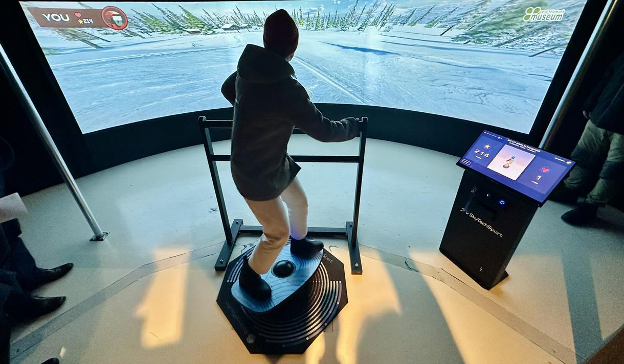 At Norwegian Ski Adventure in Morgedal, you can try the museum’s newest attraction – the ski simulator, which opened in the summer of 2025. Imagine yourself as Sondre Norheim racing down Ordalsåta on skis, from Jåfjell to Nystaul – or perhaps you’d rather choose a snowboard before you set off? The simulator combines excitement and history, offering a fun and educational experience of skiing’s roots.