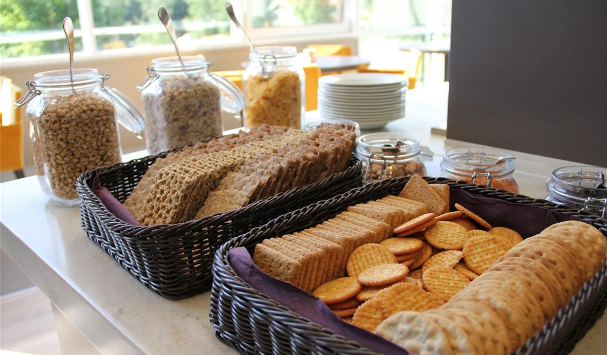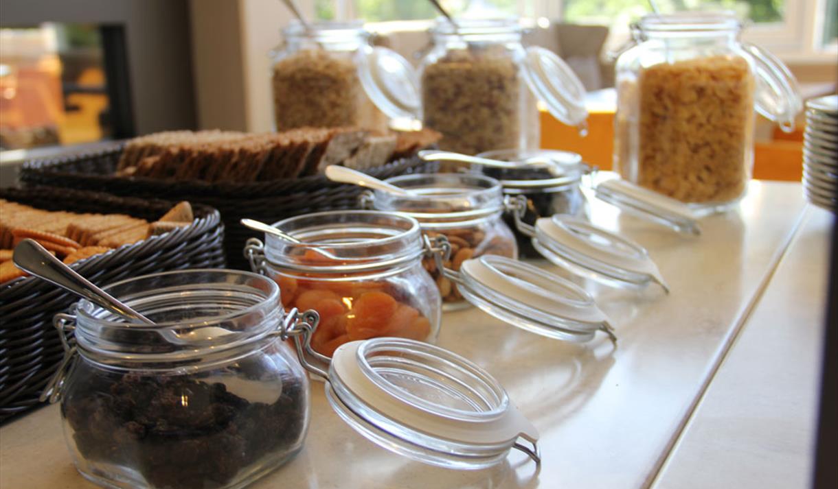 • crispbread and muesli from the breakfast buffet at the Hagestua restaurant at Bø Hotell