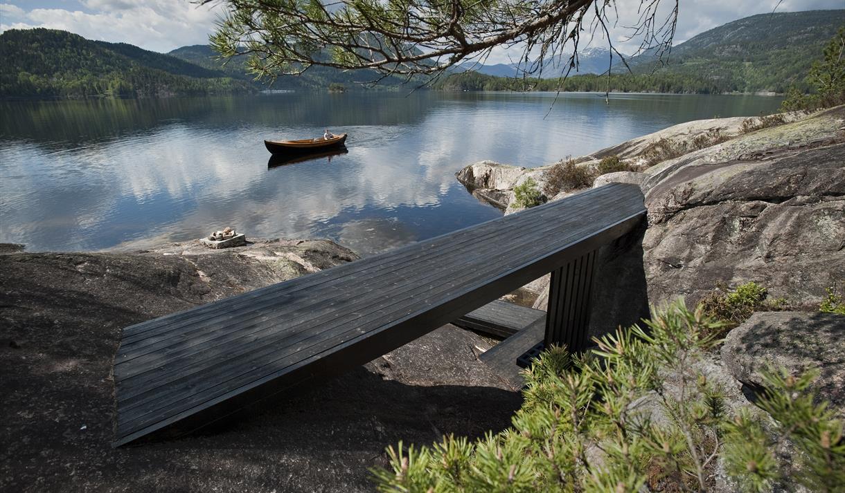 Take a walk to the art installations "into the landscape" around the Lake Seljord, and look for The Sea Serpent: