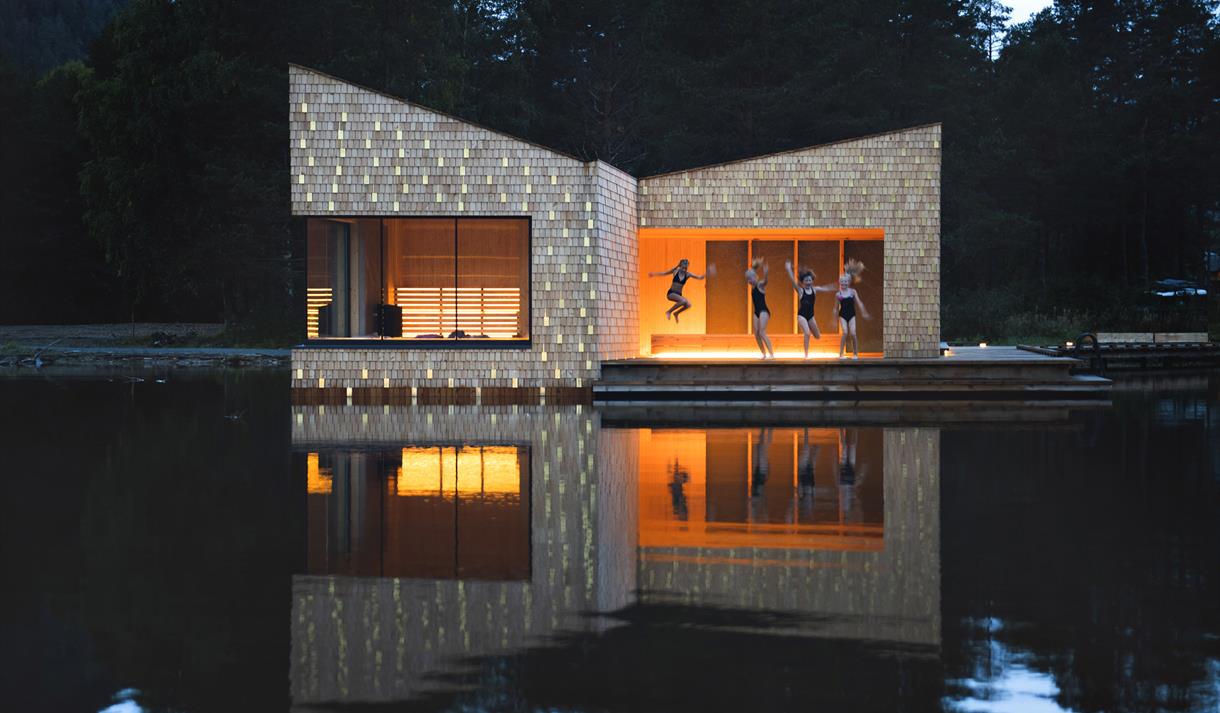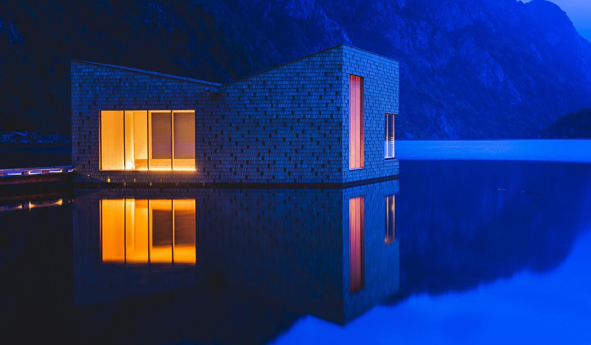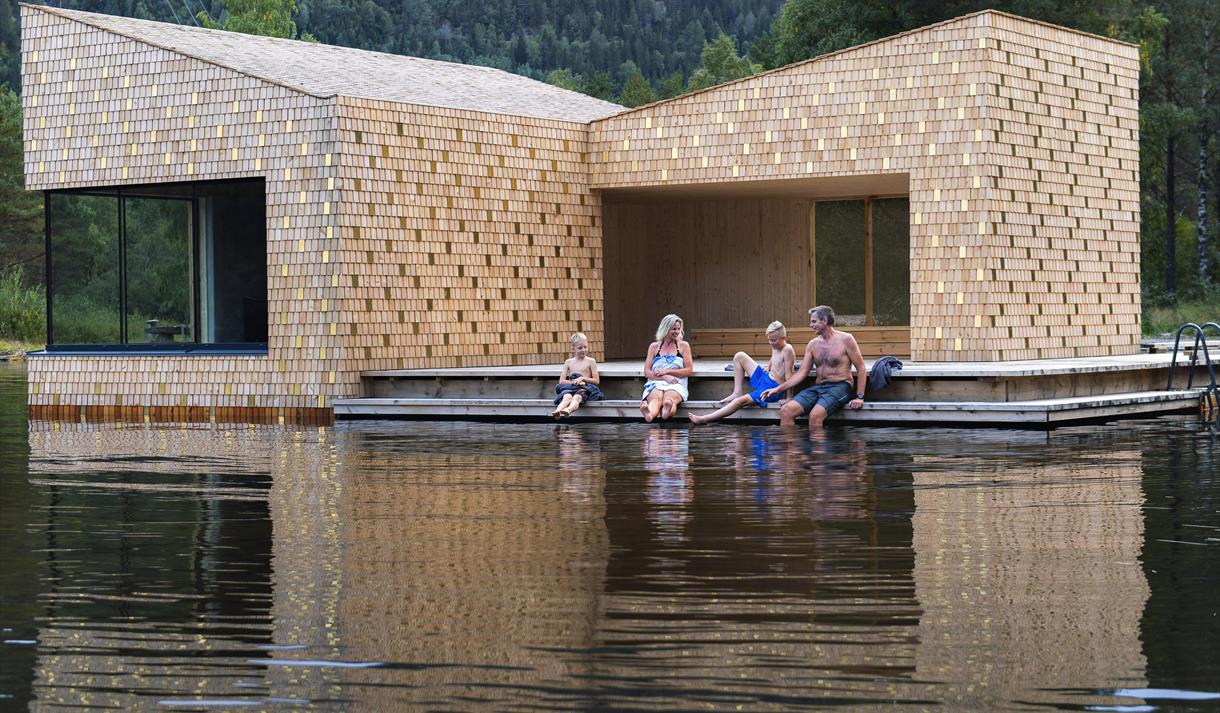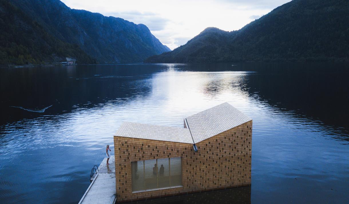 Soria Moria is a work of art of a sauna - glittering like a piece of jewelry in Lake Bandak!