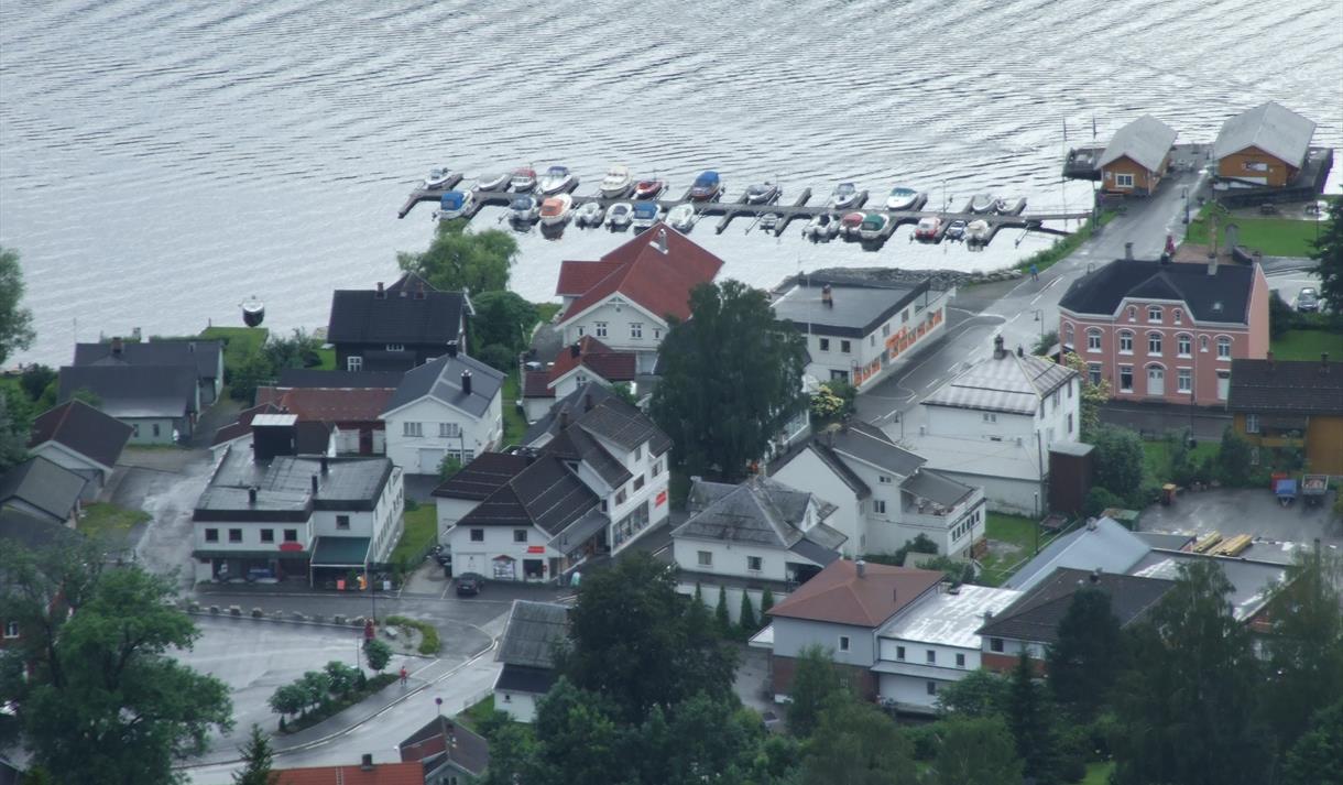From RV41 (highway) direction "Kviteseidbyen" and "Kanalbåtane". The pier is at the end of "Kviteseidgata" by Telemarkskanalen.