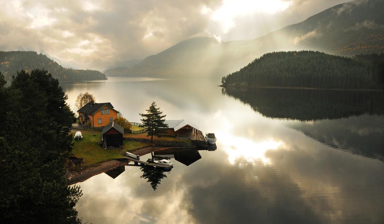 Norways smallest cable ferry takes you and your car across the lake Nisser, from Nissedal…