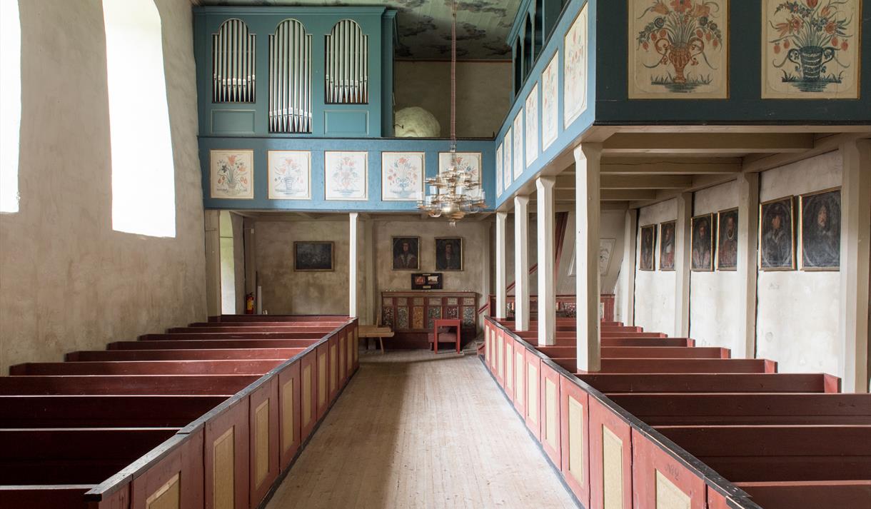 The Old Chuch of Kviteseid was built of stone about 1172 and dedicated to St Olav. The roof was decorated by Thomas Blixius in 1714 in twenty parts.